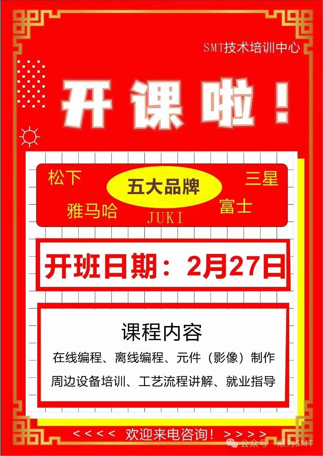2.培訓的機型有: 三星、雅馬哈、松下富士、JUKI